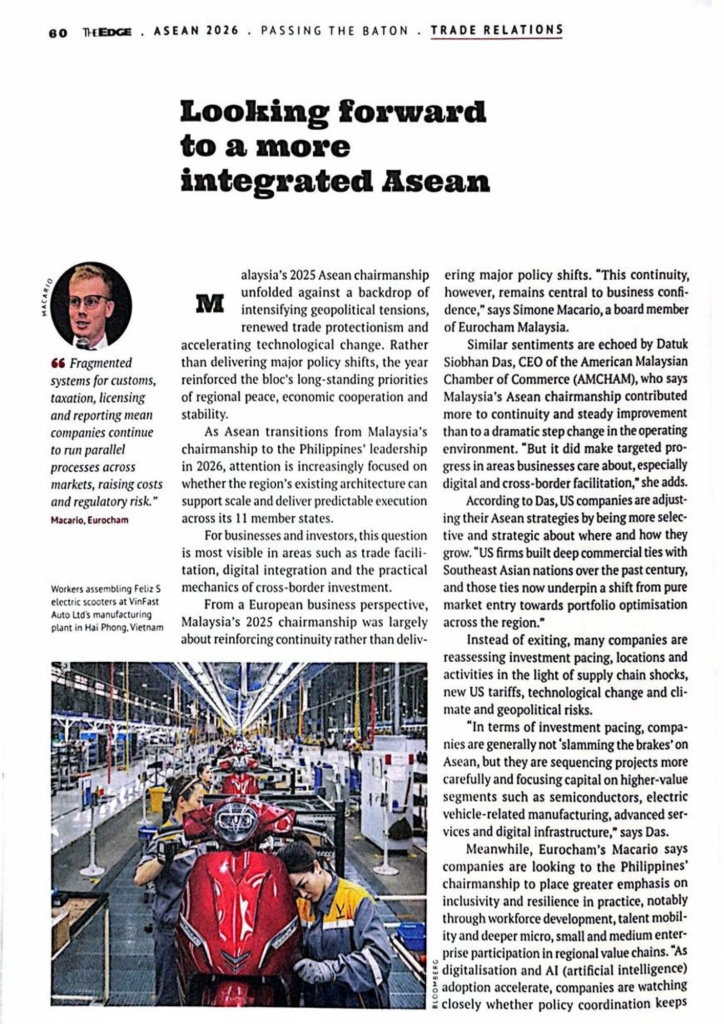 As the ASEAN region looks toward the 2026 transition, the focus for the private sector is shifting from high-level policy to the practical mechanics of doing business across borders. In a recent special feature in The Edge, Executive Committee Member, Simone Macario shared insights on how the success of the upcoming chairmanship will be measured by […]