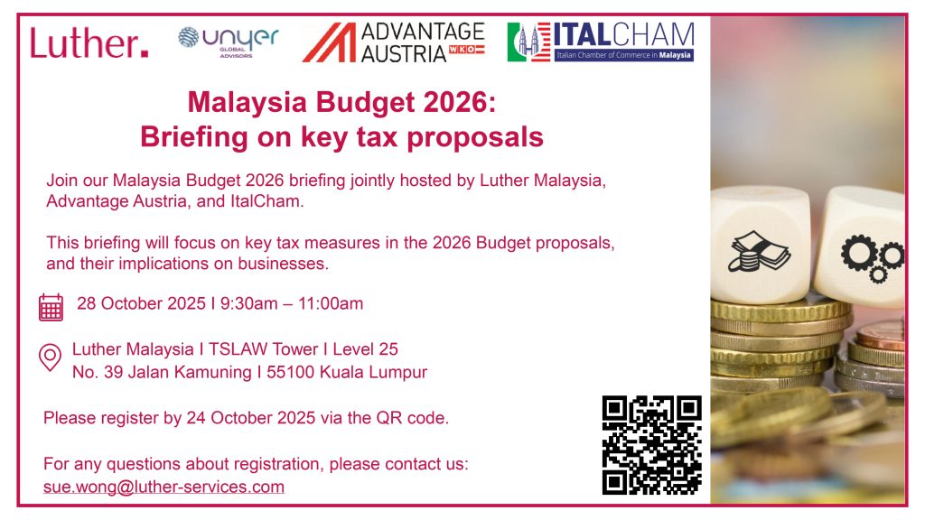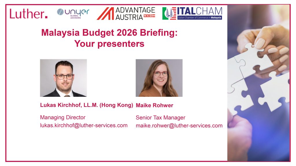 Italcham Malaysia and its esteemed Platinum member Luther Malaysia, in collaboration with Advantage Austria, is pleased to invite you to an essential briefing on the upcoming financial landscape: Malaysia Budget 2026: Briefing on Key Tax Proposals.